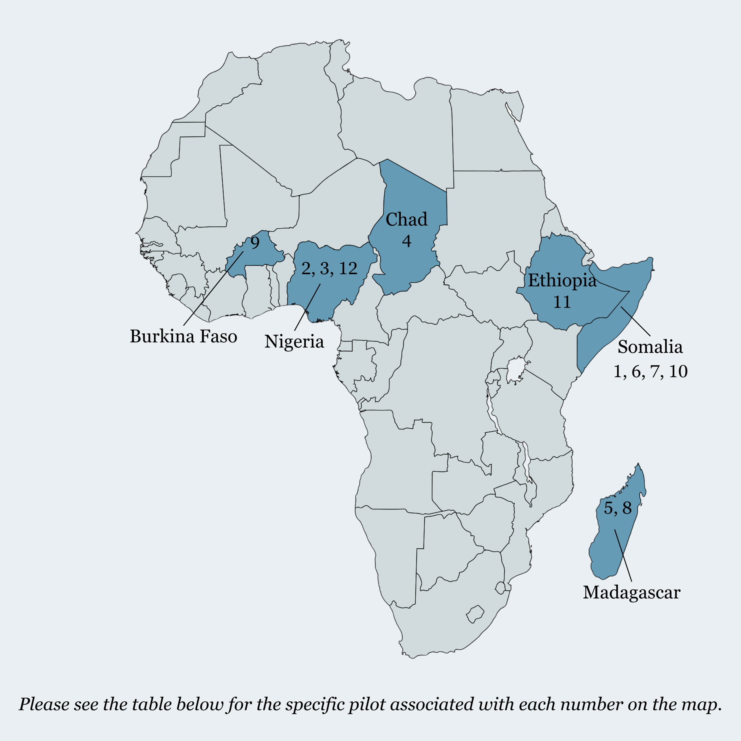 Local context. Some of the pilots are being conducted in rural areas, others in or near urban settings. Many of the pilots will provide chlorinated water to refugee camps or to camps for internally displaced persons. Some pilots will include installation of devices on private boreholes.2A borehole is similar to a well, but is typically deeper and narrower than a well, reducing the chance for surface contamination. By diversifying the contexts in which the programs are implemented, we expect to learn more about the feasibility of in-line chlorination in a wide variety of settings.