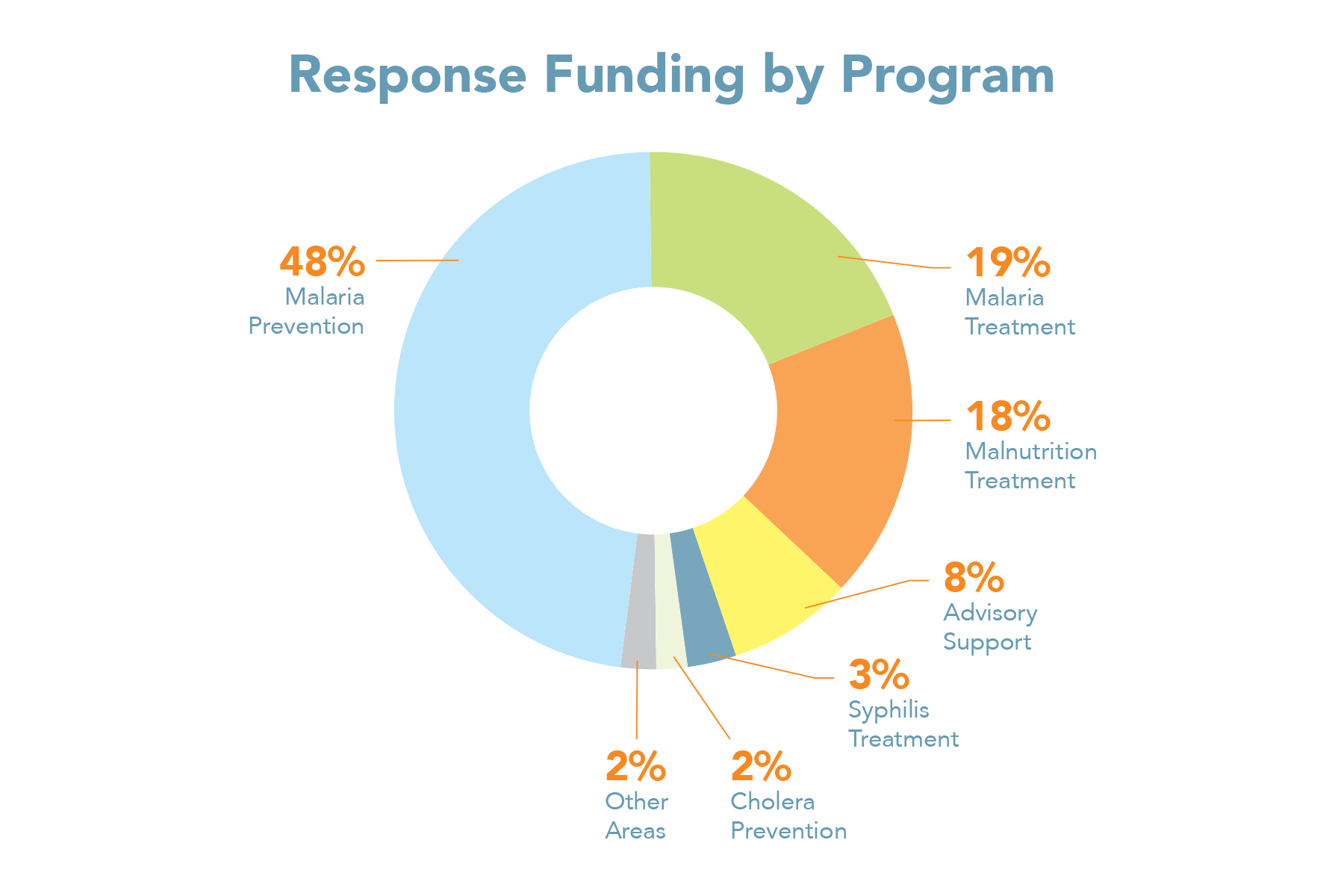 Donut chart with categories corresponding to the percentage of response funding for each program area