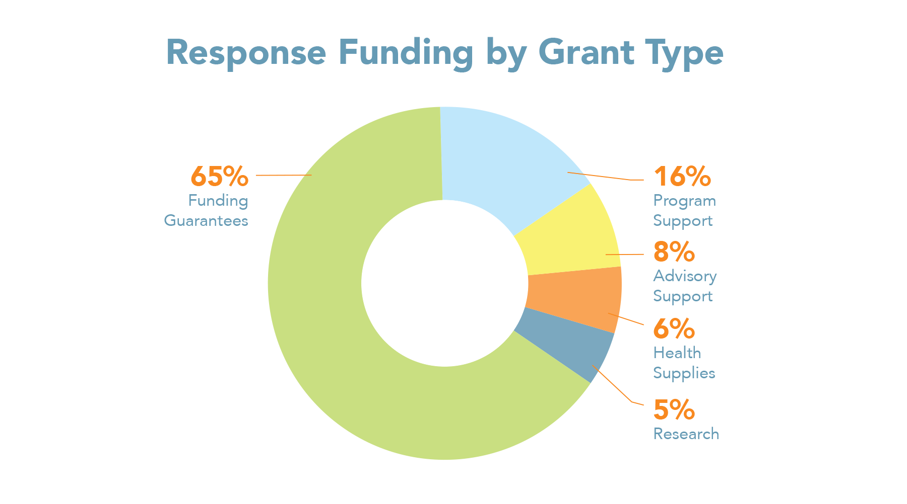 Donut chart with percentage of response funding by type of grant