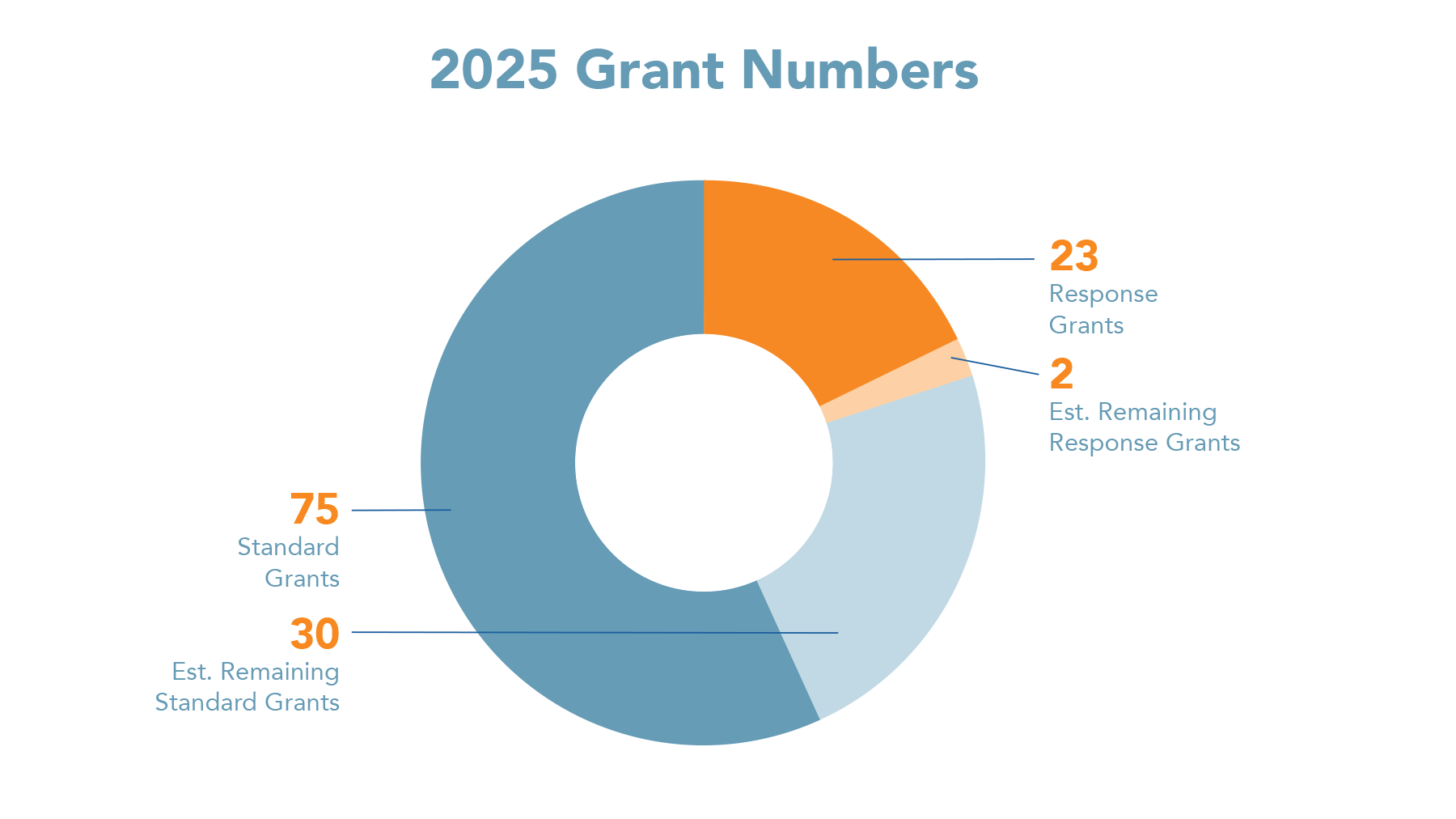 Donut chart with number of response grants and number of standard grants in 2025.