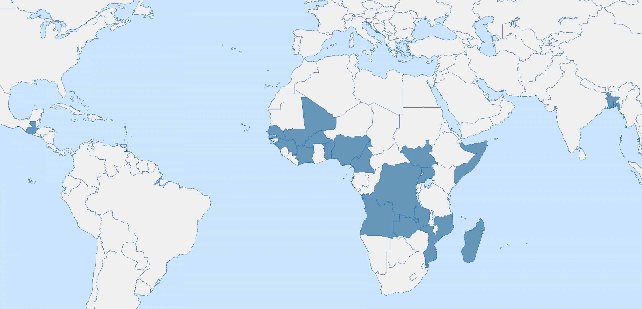 World map with some countries highlighted